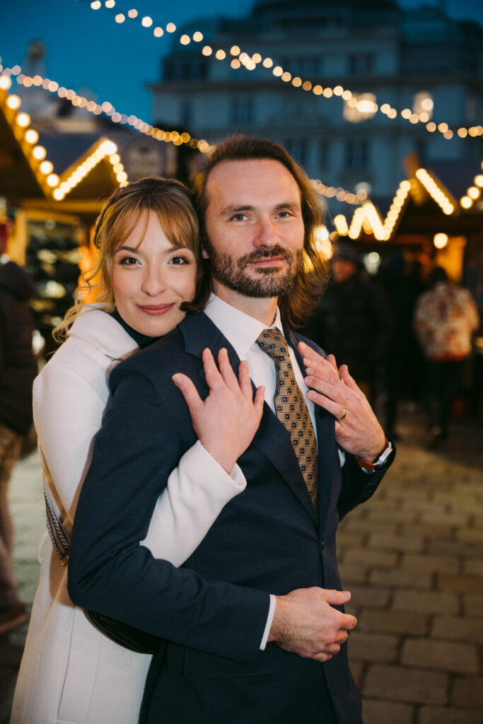Fewer tourists know about the Belvedere Christmas market, and that is precisely what makes it extraordinary. The baroque reflecting pool — frozen in colder years — provides a mirror image of the Upper Belvedere’s illuminated façade. Couples and engagement clients consistently tell me this is their favourite location after they see the final images.